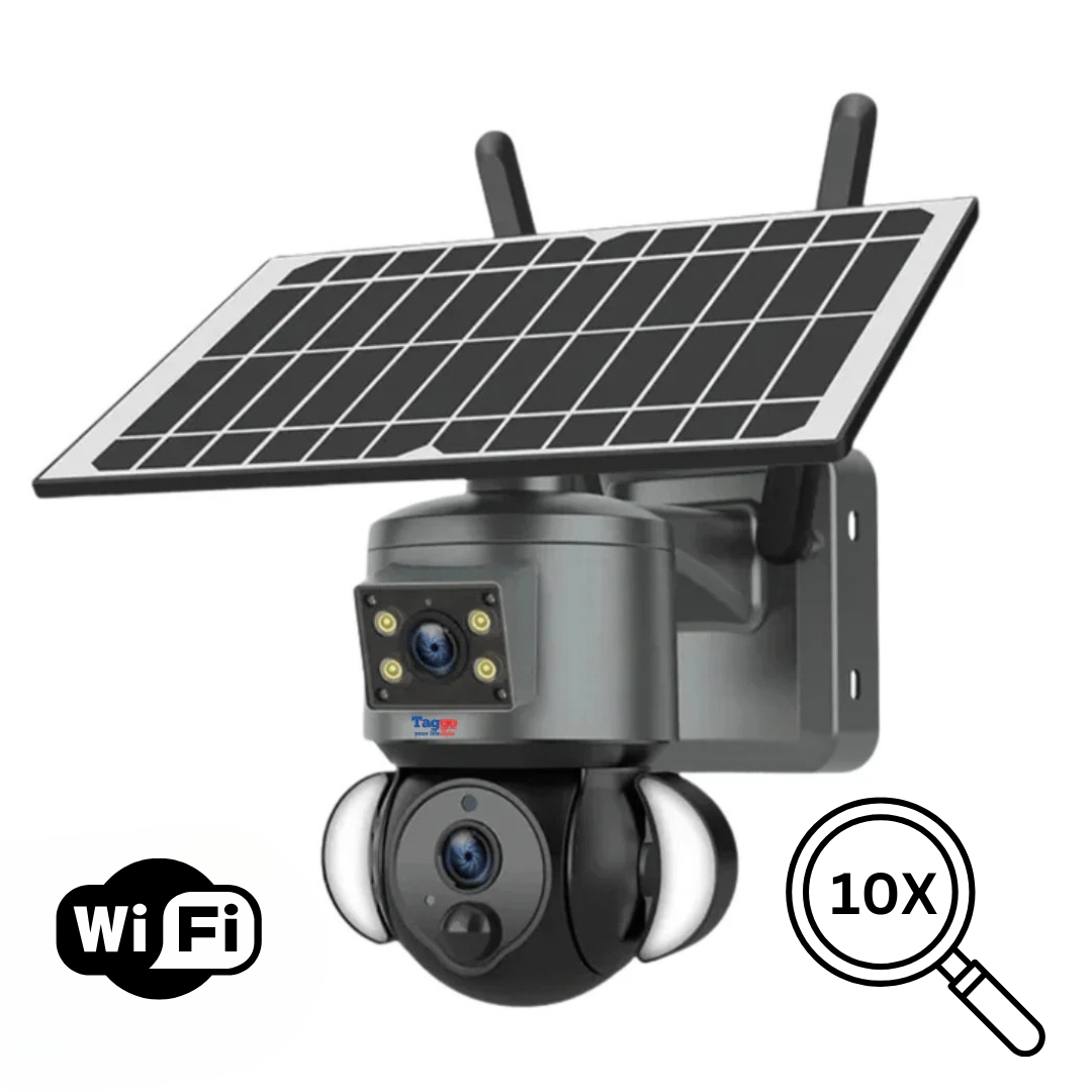 Camera Supraveghere WIFI 4K Ultra HD. Dual Camera 4MP+4MP. 10X ZOOM. Incarcare Solara. Rotire Din Aplicatie. Rezistenta La Apa IP 66