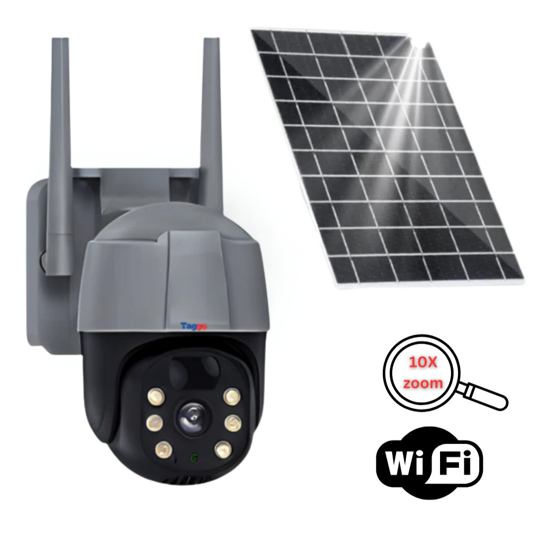 Camera de supraveghere WIFI cu incarcare solara 5W. SUPER 3K 6MP Dual Lens. 10X ZOOM. IP66. Control din aplicatie. Detectare miscare. Comunicare bidirectionala.
