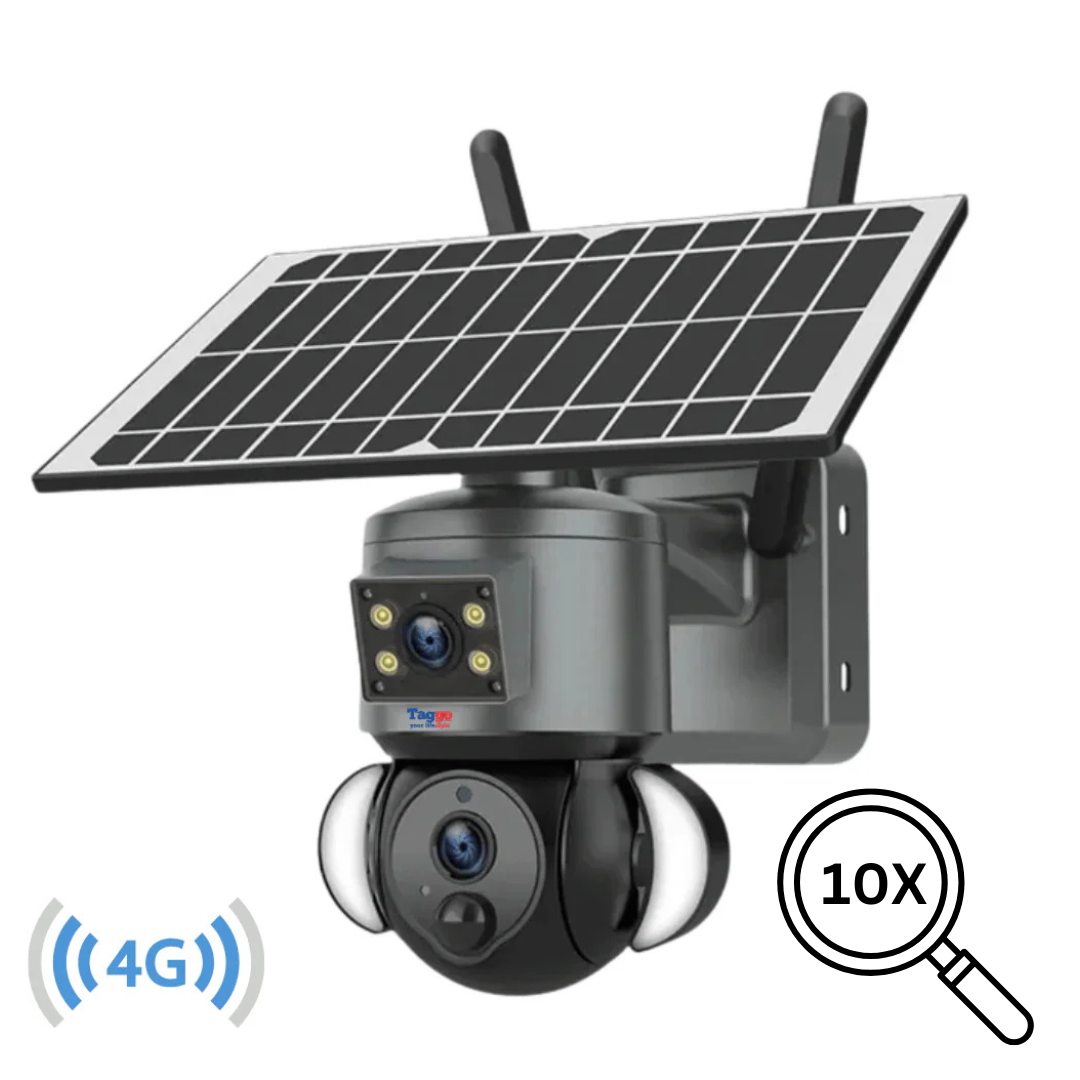 Camera Supraveghere 4G si WIFI 2K Ultra HD. Triple Lens. 10X Optical ZOOM. Incarcare Solara. Rotire Din Aplicatie. Rezistenta La Apa IP 66