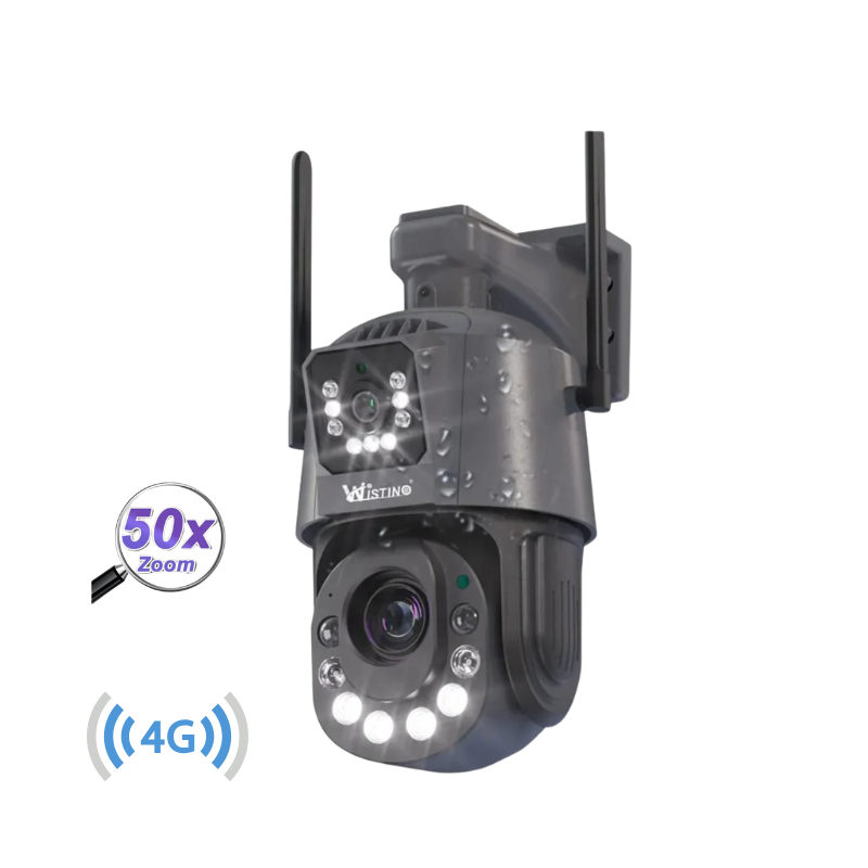 Camera de supraveghere 4G Cartela SIM 6K. 50X. 2 lentile. Control din aplicatie. Detectie umana. Rezistenta la apa IP66