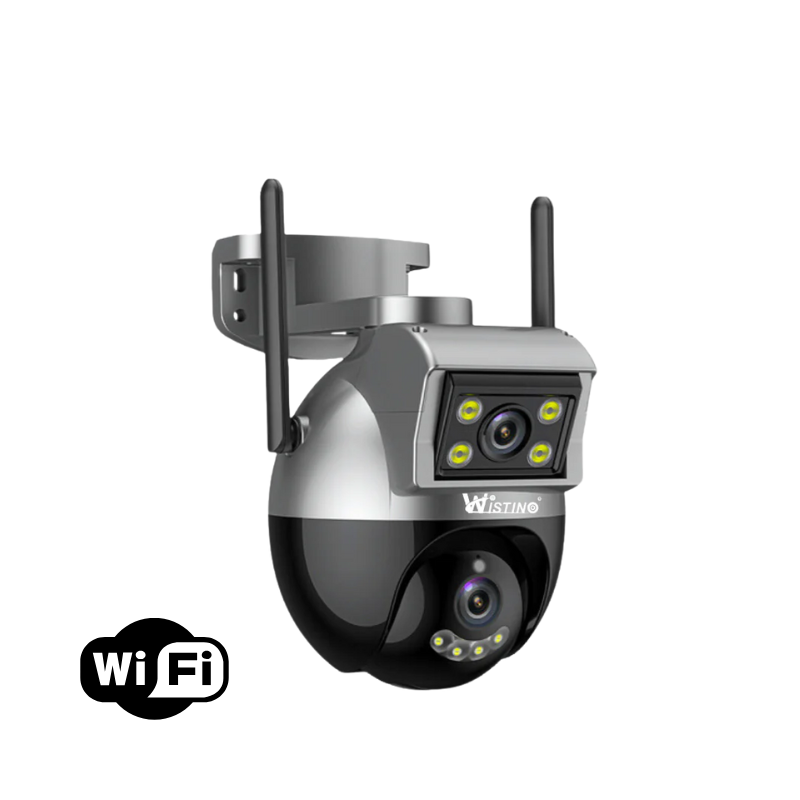 Camera de Supraveghere Exterior / Interior Dubla WIFI. 4MP. Ultra HD. Rotire. Leduri Lumina. Comunicare Bidirectionala. Senzor Miscare