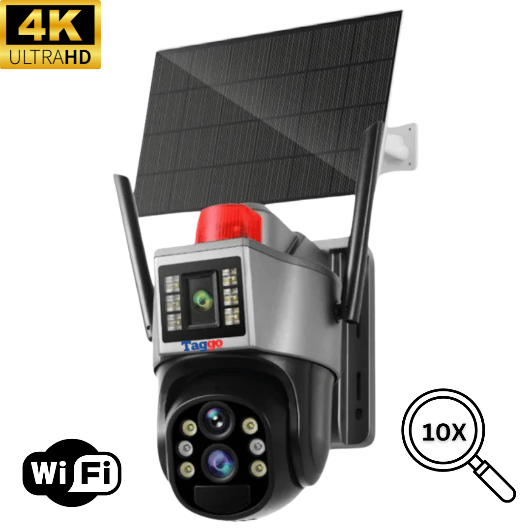 Camera Supraveghere WiFi 4K Ultra HD. Dual Camera 4MP+4MP. 10X Optical ZOOM. Incarcare Solara. Rotire Din Aplicatie. Rezistenta La Apa IP 66