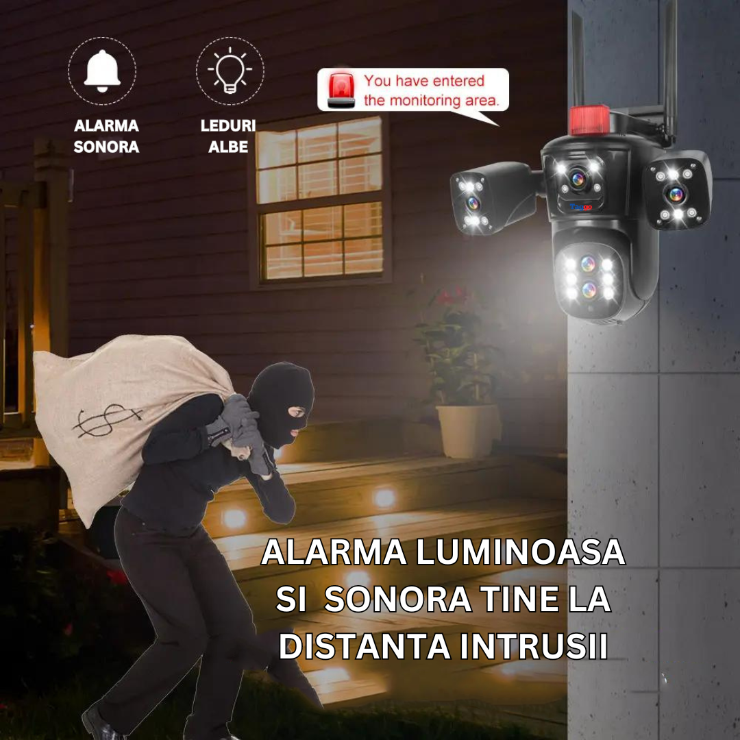 Camera are si functie de urmarire automata pe langa detectia umana. camera detecteaza tinta si o urmareste in aria de acoperire a senzorilor