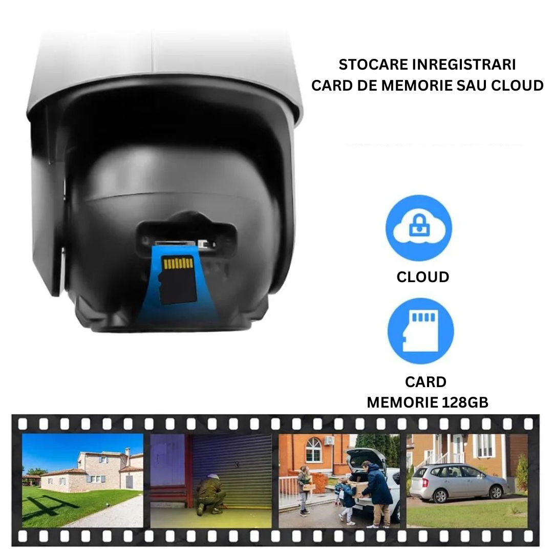 Camera 3 lens este formata din 3 lentile: 1 fixa. 1 mobila. 1 lentila zoom 10X. Din aplicatie puteti controla camera mobila orizontal 355. vertical 90 pentru a acoperi o arie cat mai mare.