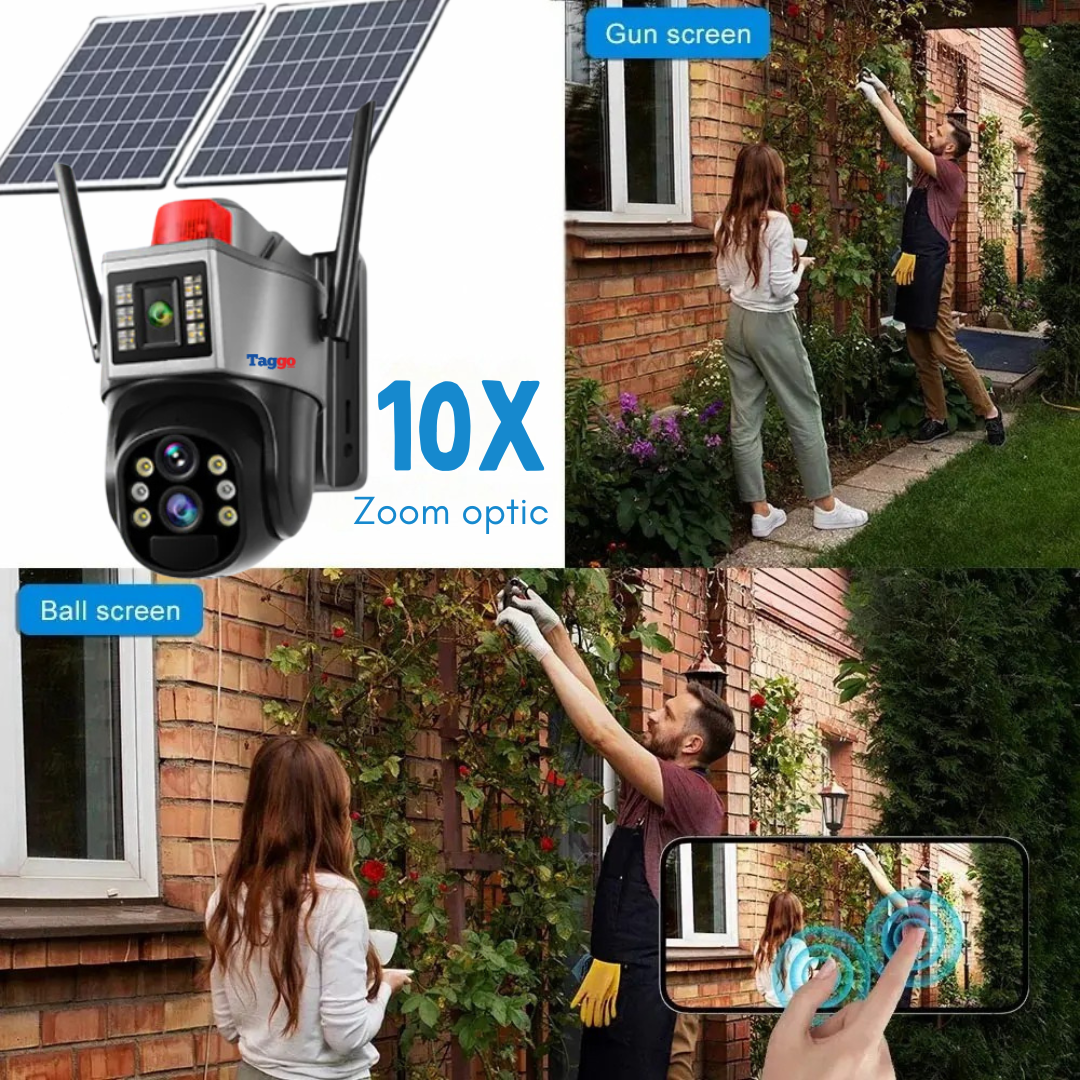 Camera de supraveghere solara Taggo 8MP cu dublu obiectiv.