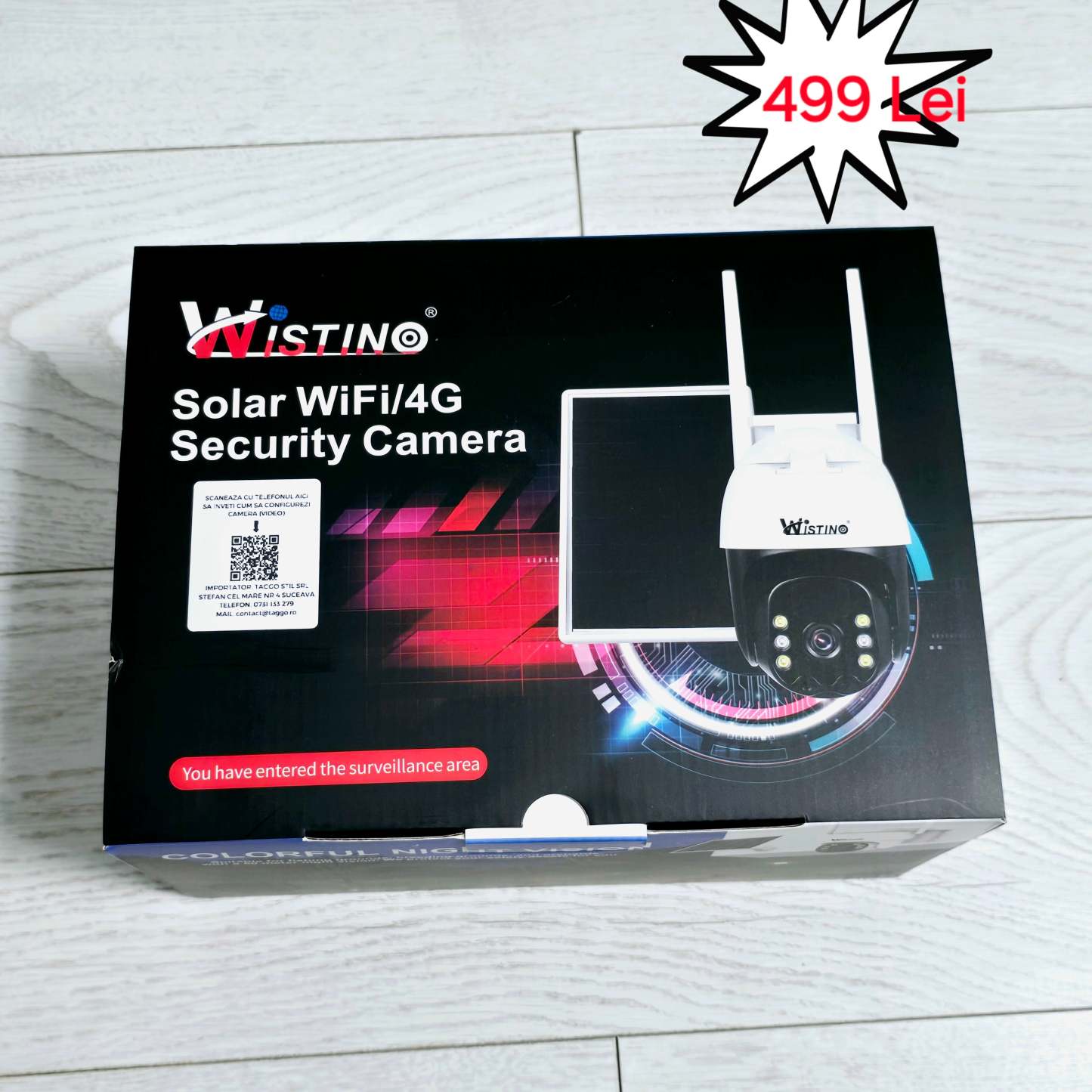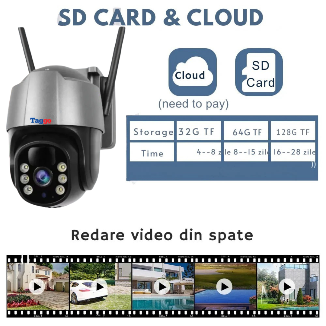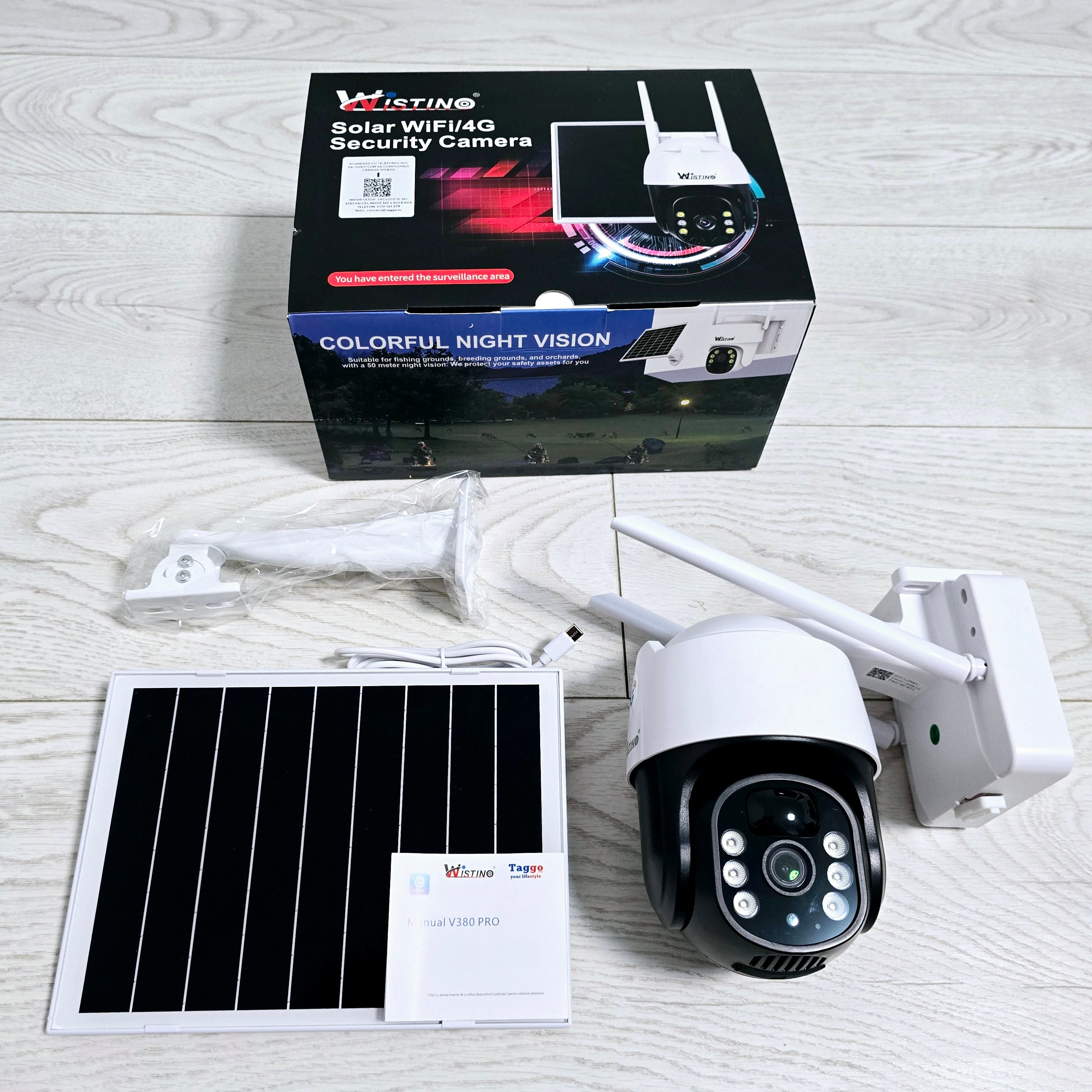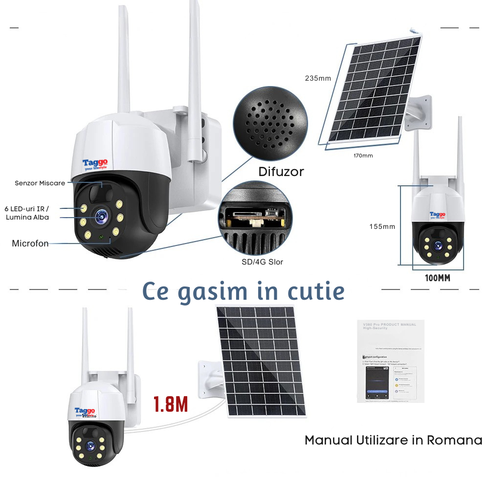 Camera de Supraveghere Solara Exterior WIFI 5 MP. Zoom 10X. Full HD 1080p. Panou Solar 9W Rezistenta La Apa IP 66. Alba