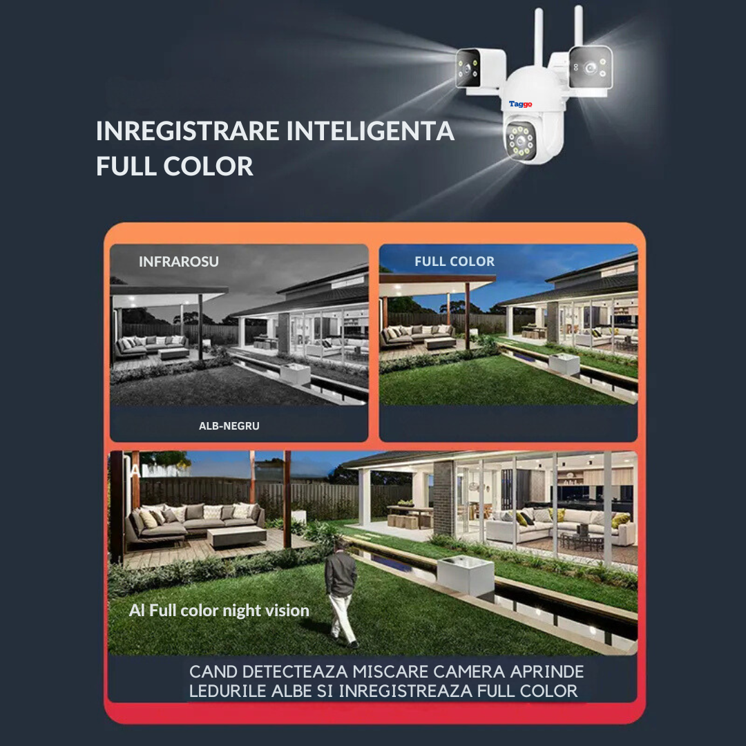 Dispunem de multe camere cu 3.4 sau 5 lens insa acest model revolutionar vine cu 2 camere fixe cu un unghi reglabil de 180°.