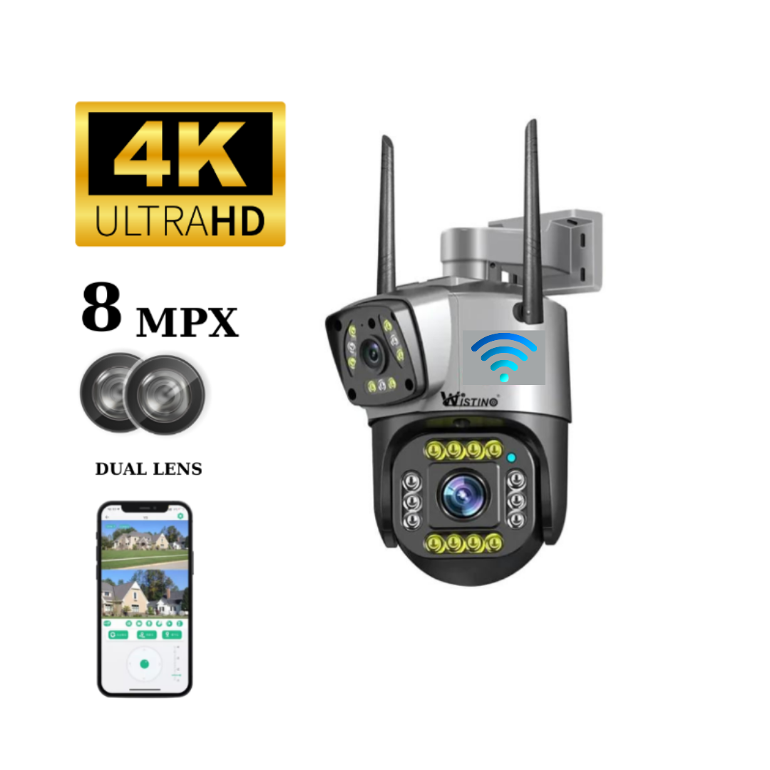 Camera de Supraveghere Wi-Fi 4K. 8MP. Control prin Aplicatie. Lentile Duale. Urmarire Automata si Rezistenta la Apa IP66